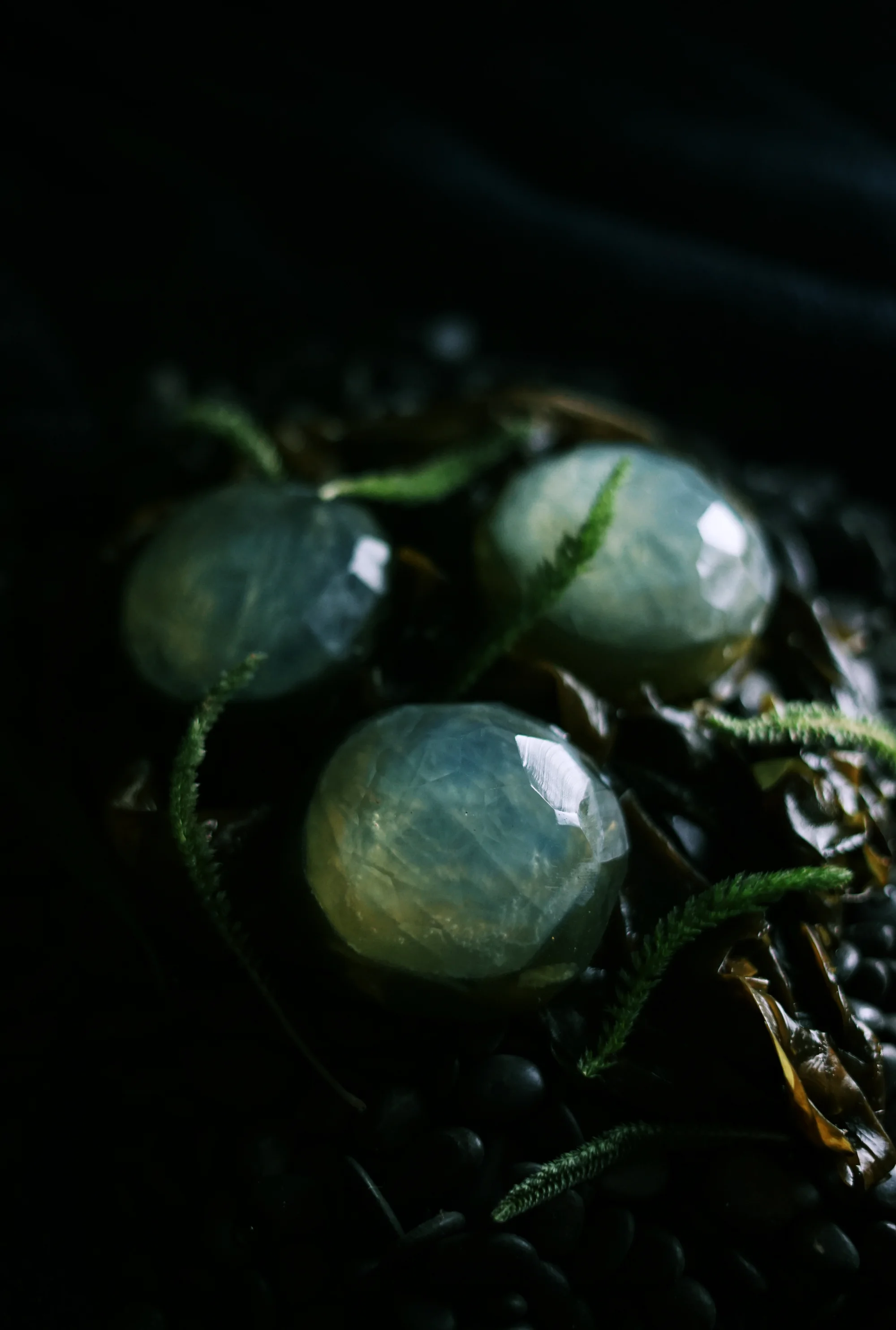 This soap is an ode to the dancing of underwater light, the shimmering of sunlight filtering through kelp forests and the gray depths that stretch far beyond our reach. It is also an ode to labradorite, the stone that perfectly captures the ephemeral luminescence of such a magical realm.